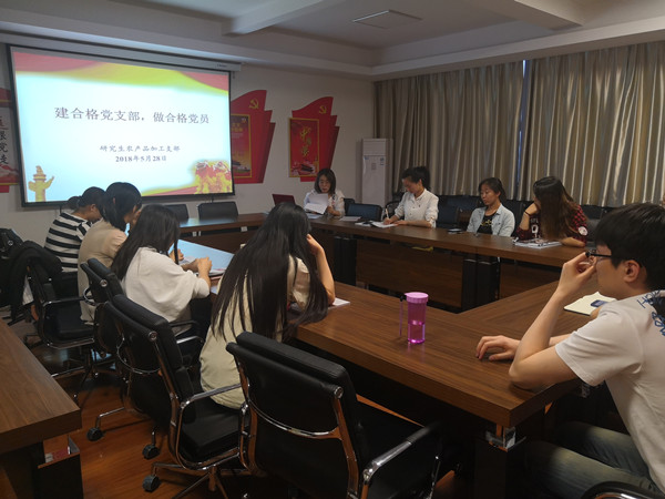 为推进“两学一做”学习教育,进一步做好党员队伍建设, 5月28日晚,研究生农产品加工支部于食品学院党员活动室召开支部会议,会议开展了“建合格支部,做合格党员”专题教育活动,同时讨论了从学生角度如何为学校“双一流”建设做贡献。