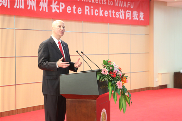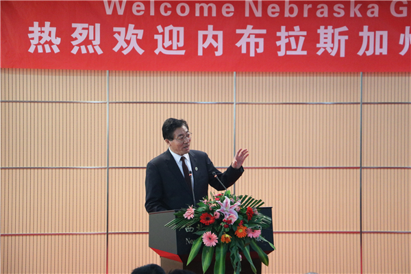 内布拉斯加州长Pete Ricketts的演讲将会议推向高潮。他首先阐述了农业对于内布拉斯加州的重要意义。内布拉斯加州农牧产值在五十州中居第六位,在全国各州中,玉米和小麦产量均占第五位,高粱占第三位,甘蔗占第六位。乳牛及肉牛饲养量居美国第三位。同时,Pete Ricketts先生指出了食品科学对于现今世界的意义,面对日益膨胀的人口问题,食品供给已经成为人类共同的关注焦点。学习食品科学的学生应该不仅仅将视野局限于就业,应当树立更高远的目标,以解决世界食品问题为己任。最后,Pete Ricketts先生表达对“3+1”国际项目班学生的期望,鼓励同学们把握住宝贵的机遇,在食品科学领域做出卓越贡献。