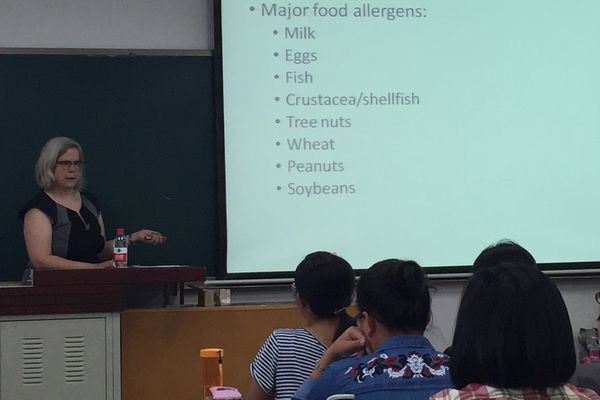 Heather Hallen-Adams博士向学生讲授了美国对食品安全的调控、食品标签和食品过敏等内容。