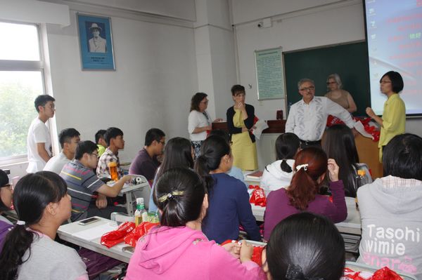 在最后的师生互动环节中,UNL老师们强调,对于“3+1”的学生而言,英语学习和专业知识学习同样重要,需要学生更加努力才能取得更大的收获。就学生提出的有关食品科学和赴UNL求学的系列问题,老师们一一作了答复。为了鼓励学生用英语提问,UNL的老师们还精心准备了纪念品。整个课堂气氛活跃,学生积极参与,互动效果良好。