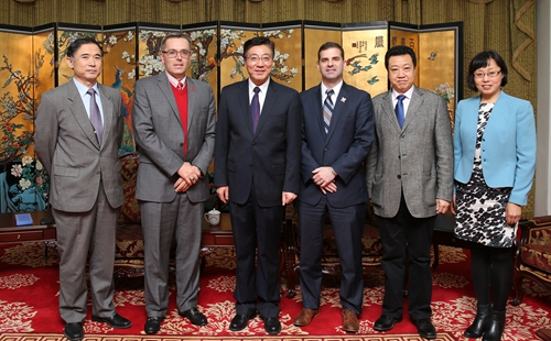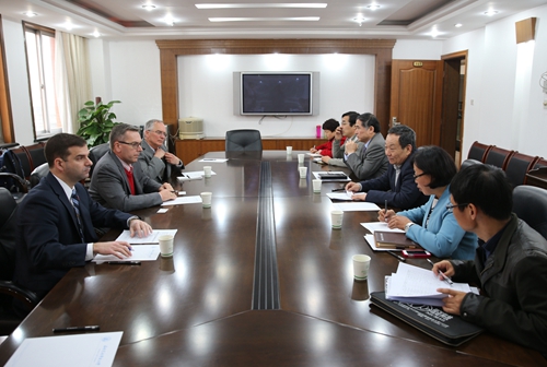 3月25日上午,美国内布拉斯加州国际经济发展部副部长Cobus Block先生及内布拉斯加林肯大学副校长Ronnie Green等一行15人来我校访问交流。