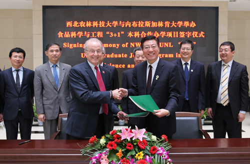 9月13日,孙其信校长与美国内布拉斯加林肯大学校长Harvey Perlman分别代表两校在国际交流中心签署了双方合作办学协议,标志着食品科学与工程本科专业“3+1”合作办学正式生效。赵忠常务副校长、罗军副校长等参加签约仪式。