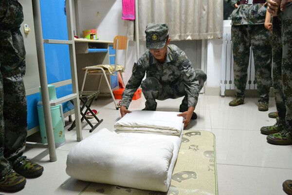 新生入学的第一课就是军训,但很少有人知道内务整理是军训中最重要的内容之一。军训,除了要学会列队动作外,最重要的就是要学会照顾自己,这其中一项就是内务整理。用军人的标准来要求学生做到床单平展,被子平滑,衣架统一,左窗右纱等。
