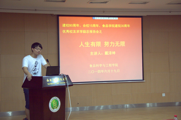 表彰会后,来自加拿大麦吉尔大学的田一茹和加拿大曼尼托巴大学的折泳波两位校友,以及我院应届毕业生戴泽坤同学(被荷兰瓦赫宁根大学、澳洲昆士兰大学、新南威尔士大学、加拿大英属哥伦比亚大学四所国外大学录取)分别为我院本科生作求学励志报告,讲述了他们申请出国留学的经验以及在国外学习生活的经历,并认真耐心地回答了同学们提出的问题,现场氛围轻松活跃。本次报告会也是我院庆祝学校建校80周年,合校15周年,建院30周年优秀校友系列报告会之一。