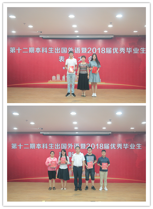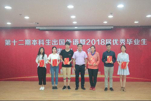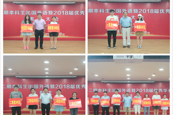 出国外语暨优秀毕业生表彰大会是学院的优良传统,2009年延续至今,学院已成功举办12次表彰,累计获奖学生人数已达317人次。2018年共表彰出国外语成绩优异本科生62名,优秀毕业生55名,兼职联络员15名。