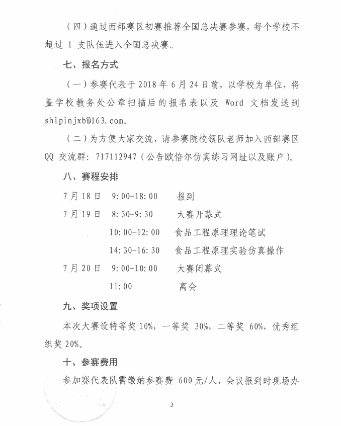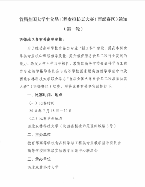 » 首届全国大学生食品工程虚拟仿真大赛通知-西部赛区第一轮